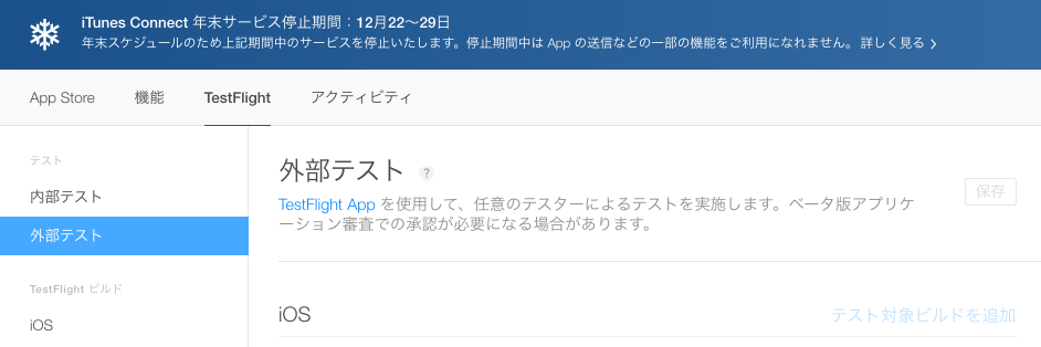 TestFlight 公開日時: 2015年12月24日 @ 942 × 314 カテゴリー: iTunes Connect停止プチ情報 Share:クリックして Twitter で共有 (新しいウィンドウで開きます)Facebook で共有するにはクリックしてください (新しいウィンドウで開きます)クリックして Pocket でシェア (新しいウィンドウで開きます)クリックして Tumblr で共有 (新しいウィンドウで開きます) 関連